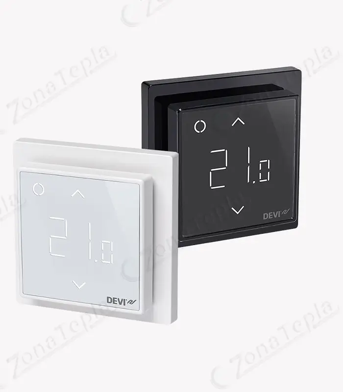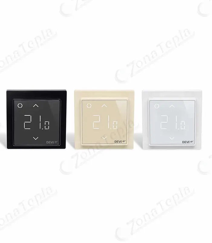 Доступний у трьох кольорах: білий, чорний та слонова кістка, що робить його відмінним вибором для будь-якого інтер’єру. З діапазоном регулювання температури повітря/підлоги від +5°C до +35°C/+5°C до +45°C відповідно, DEVIreg Smart відповідає всім потребам в зручності та комфорті.
