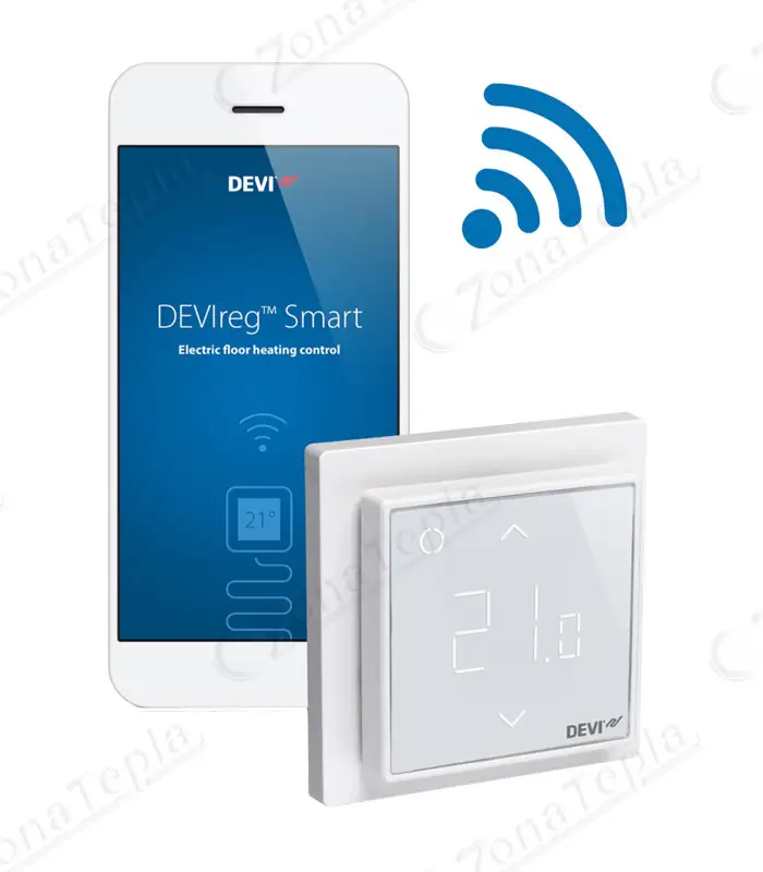 Терморегулятор DEVIreg Smart – це пристрій, який дозволяє вам максимально ефективно контролювати температуру у приміщенні з системою підігріву підлоги. Завдяки бездротовому з’єднанню Wi-Fi ви можете легко керувати температурою з будь-якої точки світу через мобільний додаток DEVIsmart™ App.