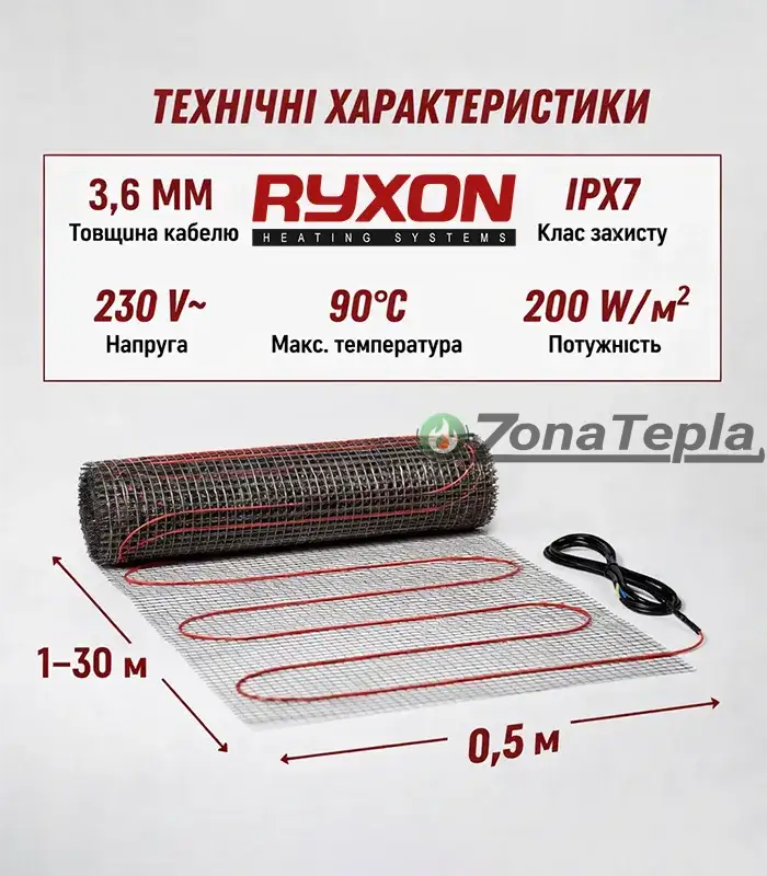 Нагрівальний мат Ryxon HM-200 (200 Вт/м²)